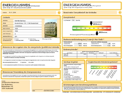 Beispiel Bedarfsausweis, Quelle: dena (Deutsche Energie-Agentur GmbH)